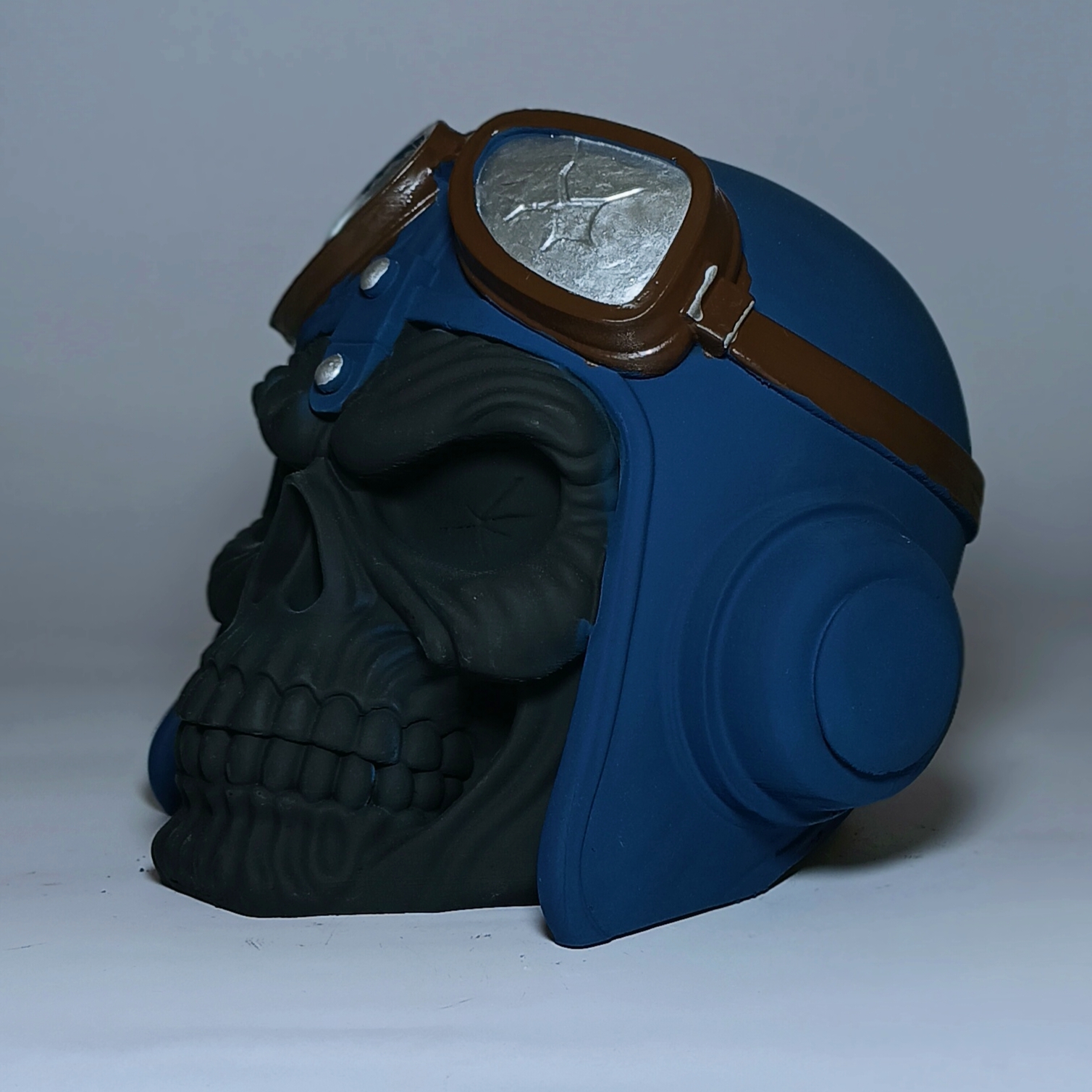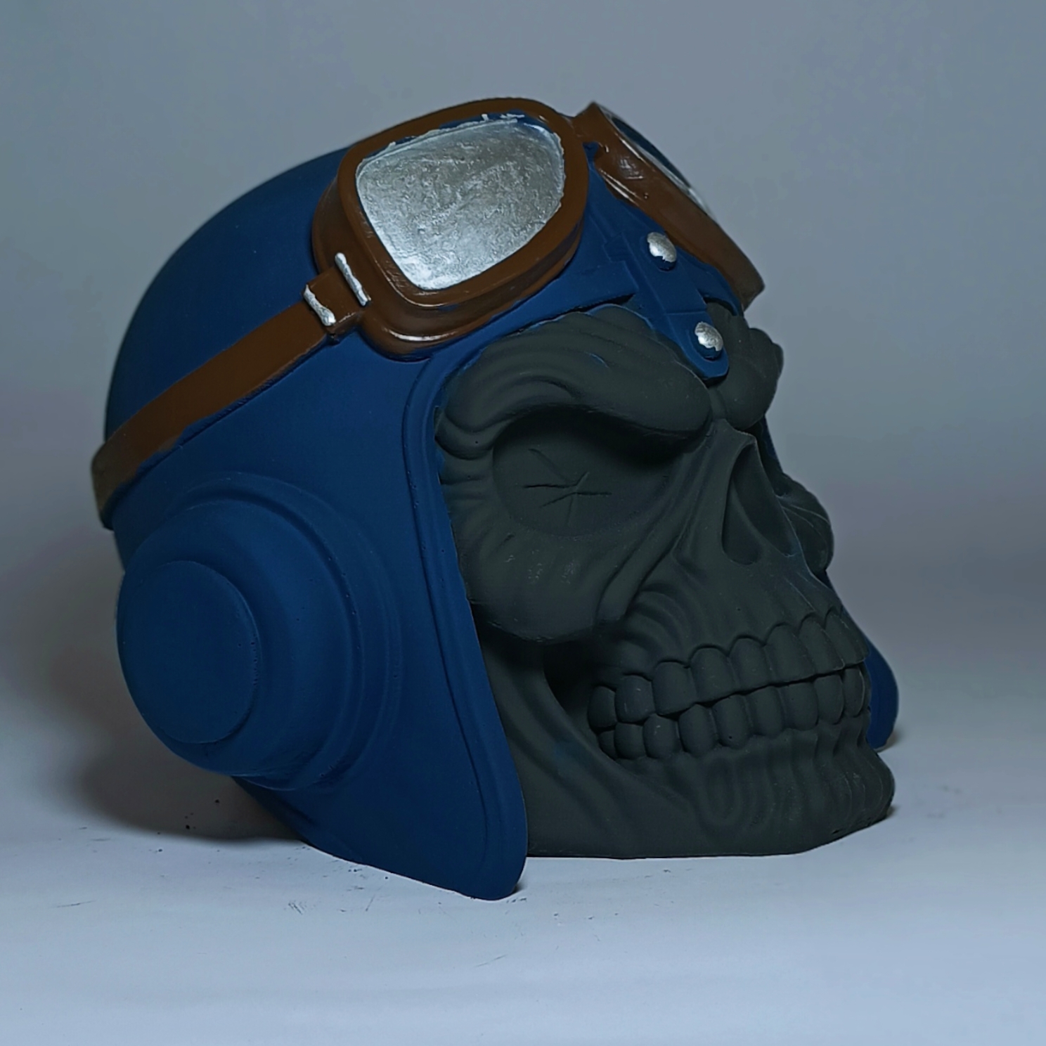Say hello to Shadow โ The Aviator Skull. A mysterious dรฉcor piece with a deep dark finish contrasted by a bold blue aviator helmet. Shadow embodies strength, mystery, and a daring edge, making it a standout in any collection.